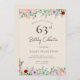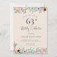 Cartes d'invitation d'anniversaire adulte | Invitation élégante 63ème anniversaire florale beige rustique