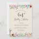 Invitations d'anniversaire pour adultes | Rustique Beige floral Elégant 64ème Invitation Ce design classique et vintage présente un fleur sauvage floral bohème simple thème et typographie de script sur un arrière - plan beige. Personnalisez l'invitation avec vos détails et si vous voulez réorganiser le style et le placement du texte, veuillez appuyer sur le bouton "Cliquez pour customiser plus loin". Pour plus de produits dans le même thème visitez ma boutique : Youtopia Official.