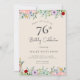 Invitations d'anniversaire pour adultes | Rustique Beige floral Elégant 76ème Invitation Ce design classique et vintage présente un fleur sauvage floral bohème simple thème et typographie de script sur un arrière - plan beige. Personnalisez l'invitation avec vos détails et si vous voulez réorganiser le style et le placement du texte, veuillez appuyer sur le bouton "Cliquez pour customiser plus loin". Pour plus de produits dans le même thème visitez ma boutique : Youtopia Official.