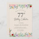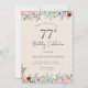 Invitations d'anniversaire pour adultes | Rustique Beige floral Elégant 77ème Invitation Ce design classique et vintage présente un fleur sauvage floral bohème simple thème et typographie de script sur un arrière - plan beige. Personnalisez l'invitation avec vos détails et si vous voulez réorganiser le style et le placement du texte, veuillez appuyer sur le bouton "Cliquez pour customiser plus loin". Pour plus de produits dans le même thème visitez ma boutique : Youtopia Official.