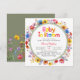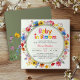 Invités Invitations à célébrer en style avec cette invitation baby shower de fleur sauvage vert sage "Baby in Bloom". Doté d'une couronne d'aquarelle colorée de fleurs de prairie et de lettrages ludiques, ce design allie charme rustique et détails lumineux et joyeux. Customisez avec vos informations d'évènement pour une tenue joyeuse qui s'harmonise parfaitement avec le reste de votre Fleur sauvage Baby in Bloom décor de fête.
