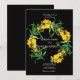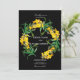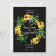 Une invitation de mariage simple et élégante faite de fleurs sauvages dans des couleurs vives et joyeuses L'invitation comprend la formation de fleurs sous forme d'un cadre circulaire, fleuri, avec arrière - plan noir.