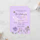 Un arrière - plan violet. Décoré d'abeilles et de fleurs sauvages peints en violet et rose et d'un grand papillon. Personnalisez et ajoutez vos noms et les détails.