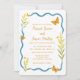 Invitations invités avec cette charmante invitation à un mariage de papillons dans le jardin, avec des papillons oranges blanches, des fleurs jaunes sauvages et une bordure bleue ondulée qui imite une brise douce. Idéal pour un mariage d'été dans un jardin botanique, un pré ou un espace extérieur. Les polices manuscrites et la palette douce et joyeuse donnent un ton romantique et d'inspiration nature. Customisez facilement avec vos noms, votre date de mariage et votre emplacement. Idéal pour les mariages du printemps et de l'été, surtout ceux qui ont un thème rustique, fantaisiste ou de jardin.