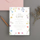 Fêtez l'émerveillement de nouveaux débuts avec notre Fleur sauvage Wonderland Baby shower Invitation! Ce design neutre pour les hommes et les femmes présente un charmant motif fleur sauvage aux couleurs vives, parfait pour accueillir le petit avec joie et style. Personnalisez les détails et envoyez cette belle invitation pour donner le ton d'une rencontre sincère remplie d'amour et d'anticipation. Parfait pour les parents qui aiment la nature et qui sont heureux de partager ce moment spécial avec leur famille et leurs amis.