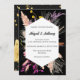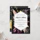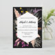 Mélangeant avec élégance des éléments contrastés, cette invitation de mariage époustouflante présente un design floral multicolore vibrant qui s'épanouit sur un fond noir profond. Enfermé dans une bordure géométrique intemporelle, la police stylée de la carte ajoute une touche de sophistication moderne, promettant une célébration mémorable d'amour et de joie.
