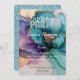 Invitation Fleur Violette Pailletée Bleu Aqua Or Anniversaire