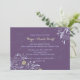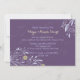 Une invitation élégante avec des volutes et des fleurs abstraites gracieuses dans la nuance la plus légère de lavande sur un fond prune plus profond. Convient à pratiquement n'importe quelle occasion joyeuse.