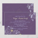 Une invitation élégante avec des volutes et des fleurs abstraites gracieuses dans la nuance la plus légère de lavande sur un fond prune plus profond. Convient à pratiquement n'importe quelle occasion joyeuse.