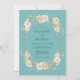 De délicates fleurs de crème et une verdure douce, artistiquement disposées en un arc fluide, créent une atmosphère éthérée. Ce design évoque la romance et une élégance intemporelle avec son fond serein de teinte bleue-vert. Un choix magnifique pour une célébration sophistiquée.
