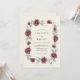 Une composition romantique de fleurs bordeaux profondes et de feuillage gris atténué crée une bordure élégante. Le style pictural évoque un charme vintage et une beauté intemporelle. Ce design est parfait pour une affaire sophistiquée.