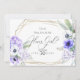 CARTON D'INVITATION DE PROPOSITION DE CORTÈGE NUPTIAL | Formes de terrarium géométriques dorées à l'aquarelle avec feuilles d'eucalyptus, lilas et anémones violettes et fleurs d'hortensia, un cadre de style terrarium géométrique doré multifacettes orné de bouquets de fleurs. Cela fait partie d'une suite complète de papeterie de mariage avec papeterie de mariage, de baby shower et d'autres événements assortis.