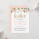 Invitation élégante pour Shower de bébé avec lettres dorées décorées de roses aquarelles roses et pêche contrastant avec des feuilles verdâtres.