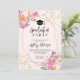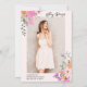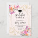 Promotion 2026 !! Une invitation de fête de remise de diplôme chic de printemps, été, rose, violet et orange avec aquarelle florale et typographie confettis pailletés or avec des fleurs peintes à la main, branches de feuilles aquarelles avec un cadre géométrique en terrarium or sur fond rose blush, ajoutez votre photo au dos