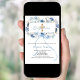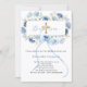 Un fond blanc élégant, orné de fleurs bleues aquarellées, un ruban bleu et une croix dorée. Personnalisez et ajoutez un nom et des détails.