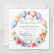 Invitation Fleurs, ballons, baby shower ours en peluche