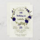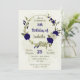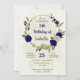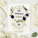 Belles invitations romantiques à la fête d'anniversaire avec des fleurs bleues et beiges royales et quelques feuilles. POUR PLUS DE PRODUITS CORRESPONDANTS cliquez sur la collection ci-dessus ou contactez-moi