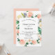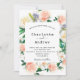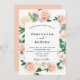 Un faire-part de mariage fleuri et tendance, blanc, or rose et rose vif. Un arrière - plan blanc chic à l'avant. Décoré de grandes fleurs verdoyantes aux couleurs de l'eau, de fleurs blanches, d'or rose, de rose vif et de verdure. Personnalisez et ajoutez vos noms et les détails du mariage. Texte noir. Retour : arrière - plan rose couleur or.