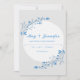Lorsque vous et votre fiancé entrez dans une pièce, les têtes se tournent. Votre style classique est l'envie de vos amis et votre mariage est l'événement le plus attendu de l'année. Annoncez la date de votre mariage avec style. Choisissez une invitation à sauver la date, ornementale mais moderne avec des fleurs bleues.