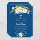 Invitation Fleurs blanches Classique Baptême garçon bleu