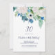 Cette invitation classique aux fêtes de 30e anniversaire de fleurs blanches est parfaite pour une fête d'anniversaire de printemps. L'élégante décoration florale est composée de roses blanches et d'ivoire, de pivoines et de chrysanthèmes, avec des touches de fleurs d'aquarelle bleu périvent et de feuillage vert.