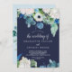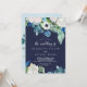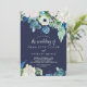 Cette faire-part de mariage marine aux fleurs blanches classiques conviendra parfaitement à un mariage de automne. L'élégant design floral présente des roses blanches et en ivoire, des pivoines et du chrysanthème, avec des touches de fleurs d'aquarelle bleu percé et du feuillage vert sur un arrière - plan bleu foncé.