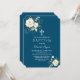 Elégant design de carte avec aquarelle délicate fleurs blanches et faux or, feuilles, croix blanche, sur l'arrière - plan bleu océan. Sur le dos bouquet de fleurs blanches et croiser. Utilisez l'outil Personnaliser pour ajouter vos informations, modifier les polices, les couleurs de la police. Pour les articles correspondants, veuillez visiter ma collection de célébrations du baptême/baptême Nouveau.