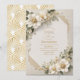 Invitation Fleurs blanches en aquarelle 3D or Fête de mariage