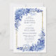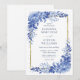 Invitation Fleurs blanches et bleues Cadre doré Mariage