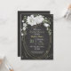 fleurs blanches romantiques et feuilles verts sur cadre ovale or botanique noir nuptiale invitation Les détails de la parties scintillant sont simulés