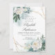 Verdure aquarelle, cadre d'or géométrique et pivoines blanches invitations anniversaire