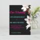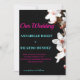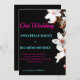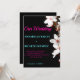 De belles fleurs blanches sur une invitation de mariage Arrière - plan noir avec des lettres turquoise et rose. Cette invitation se démarque vraiment. Il est moderne et fleuri, étonnant.