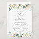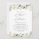 Invitations amis et famille dans le style et donner le ton pour votre journée spéciale avec cette charmante invitation d'anniversaire. Le design présente des fleurs d'aquarelle blanche et de la verdure sur l'arrière - plan blanc.