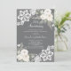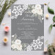Pour un 25ème anniversaire de mariage élégant et romantique. Un arrière - plan gris décoré de fleurs blanches, de roses et de dentelle blanche. Personnalisez et ajoutez vos noms et détails.