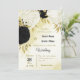 Invitation fleurs blanches noires or feuille mariage