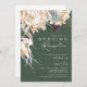 Nous avons conçu cette invitation de réception de mariage Floral Blanc | Vert Foncé pour compléter votre réception rustique tropicale sombre. Avec sa verdure bohème à l'aquarelle et ses fleurs d'hiver boho modernes, y compris les protées, les dahlias et les lotus séchés, le design est sûr de mettre en valeur votre thème vert et blanc, minimaliste et sombre. Changez le texte et ajoutez une photo pour la personnaliser. N'oubliez pas de parcourir le reste de la collection pour trouver des articles coordonnés qui rassembleront l'ensemble de votre mariage ! https://www.zazzle.com/collections/white_floral_collection-119896729923706651