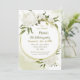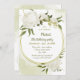 Belle invitation de fête d'anniversaire botanique romantique avec des fleurs blanches et quelques feuilles vertes et des fleurs dorées sur un cercle doré. Les détails de paillettes dorées sont simulés. Pour plus de personnalisation (changer la police ou sa couleur ou changer la mise en page), cliquez sur personnaliser, faites défiler vers le bas puis cliquez sur (Cliquez pour personnaliser davantage). POUR PLUS DE PRODUITS ASSORTIS, cliquez sur la collection ci-dessus ou contactez-moi.