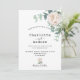 Un arrière - plan blanc chic. Décoré de pivoines blanches aquarelles, de fleurs florales et de verdure d'eucalyptus. Personnalisez et ajoutez vos noms et les détails du mariage. Lettres noires. Retour : un motif de feuilles d'eucalyptus et d'oliviers.