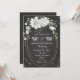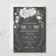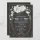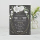 Belles fleurs blanches avec quelques feuilles verts sur cadre ovale contre faire-part de mariage arrière - plan noire Les détails de la parties scintillant sont simulés