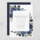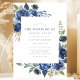 Invitation Fleurs bleu marine Aquarelle Florale Rustique Mari
