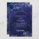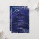 Un arrière - plan bleu marine, décoré de parties scintillant faux argentées, brille et florale bleue. La couleur bleue est inégale. Personnalisez et ajoutez vos noms et détails. Retour : Ajoutez l'url de votre site mariage pour les détails du mariage et RSVP.