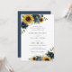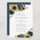 Carte de Faire-part de mariage florale bleu de la marine des tournesols. Floral Rustic Greenery Faire-part de mariage.