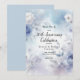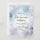 Des flores d'aquarelles douces dans des teintes rêvées de bleu et de lavande font de cette invitation un choix étonnant pour toute occasion spéciale. Que vous planifiez un baby shower, une fête d'anniversaire ou un dîner élégant, ce design ajoute une touche de grâce et de sérénité à votre événement. Les délicats détails floraux et les tons pastel apaisants créent un look intemporel à la fois sophistiqué et accueillant. Entièrement personnalisable pour votre rassemblement unique.
