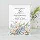 Belle invitation de 5ème anniversaire mariage de style champêtre avec de jolies fleurs bleues et marguerites blanches.