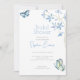 Invitation Fleurs bleues et papillons Fête des mariées blanch