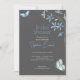 Invitation Fleurs bleues et papillons Fête des mariées gris