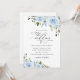 Invitations amis et famille dans le style et donner le ton pour votre journée spéciale avec ce faire-part de mariage charmant. Le design présente des fleurs d'aquarelle bleu poussiéreux et de la verdure sur l'arrière - plan blanc.