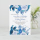 Invitation Fleurs Bleues Roses Blanches sur Cristal Blanc