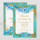 Invitation Fleurs bleues turquoises Gold fête d'anniversaire