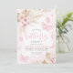 Un joli papillon rose et or 1er anniversaire invitation avec des fleurs. L'invitation parfait pour vos petites filles papillon premier anniversaire fête.